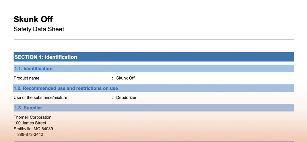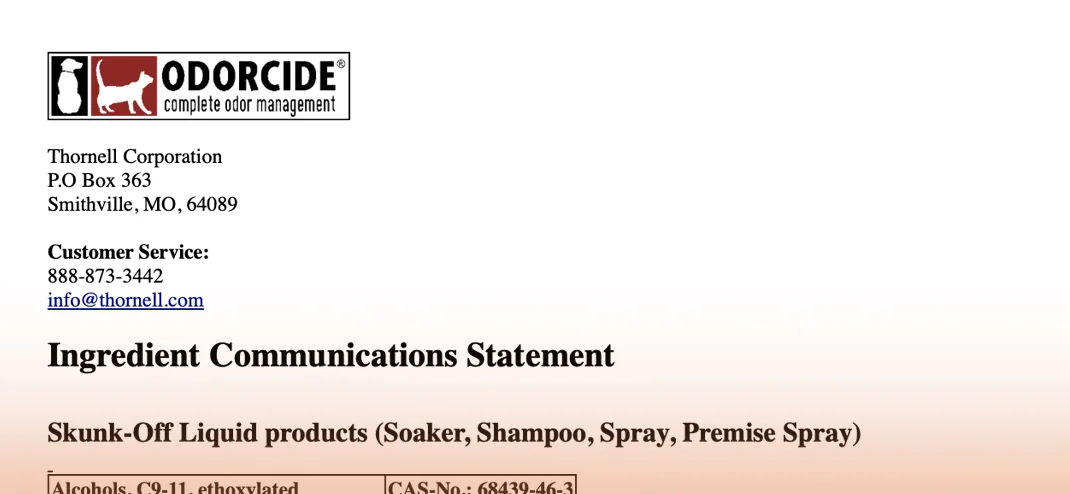 Preview of a step-by-step guide PDF on how to use Skunk-Off to remove skunk odor from pets. Click to view the full guide.
