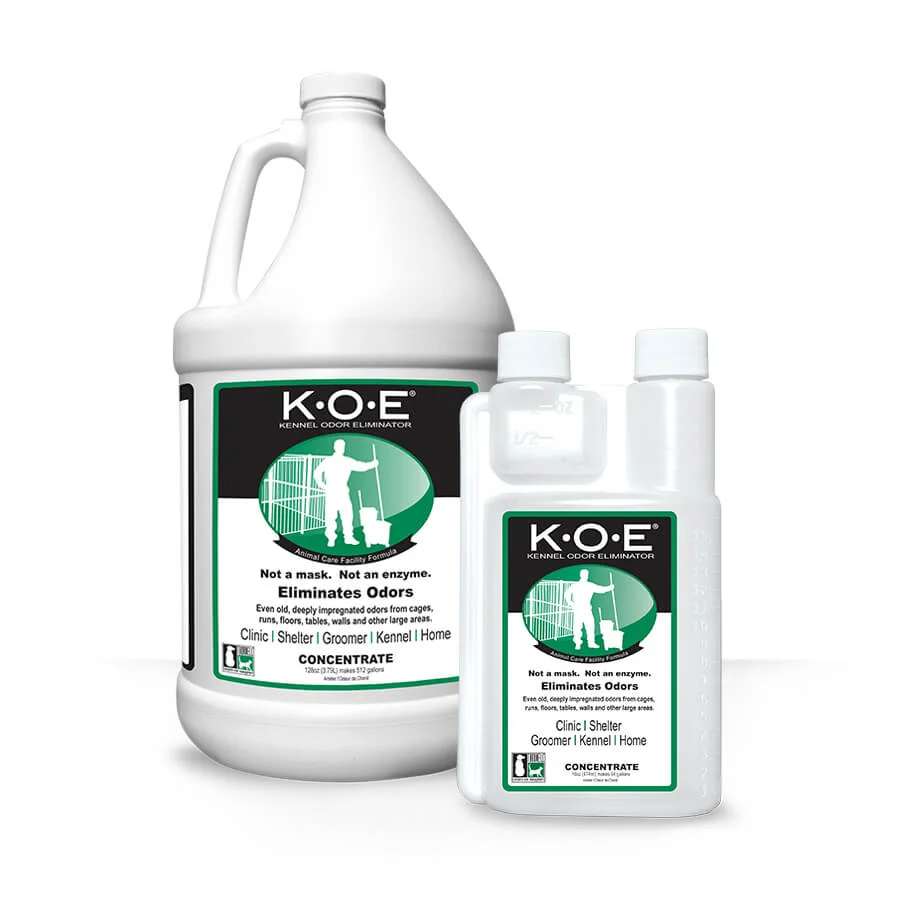 Feces, urine and emesis are just a few of the common odors present in the Animal Zone of the clinic. This includes the kennel and grooming areas and the dog & cat wards. Use K.O.E.® and K.O.E.® Fresh Scent to eliminate odors on walls and floors and in cages and other large areas of the clinic. Keeping these areas clean and odor-free will ensure that all of your patients are sent home in optimal condition and that the unpleasant odors in the clinic are not going home with them. K.O.E.® and K.O.E.® Fresh Scent eliminate odors, they do not mask them. They are not enzymes so they can be mixed with other cleaning solutions without a decrease in efficacy.